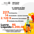 Receita Líquida R$ 6.200,00 que serão utilizados para projetos e ajuda a entidades beneficentes atendidas pelo clube.